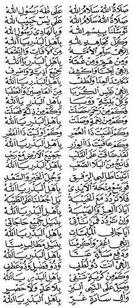 Taman 'ala sayyidina muhammadiladzi tanhallu bihil 'uqodu wa tanfariju bihil kurobu. Allohumma sholli shollatan kamilah wa sallim salaman. Dec 22, 2015 · sholawat nariyah adalah sebuah sholawat yang disusun oleh syekh nariyah inilah bacaan sholawat nariyah yang terkenal itu :